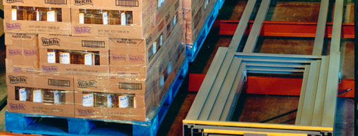 Ridg-U-Rak's patented design features large coated wheels with sealed bearings. The linked cart design provides smooth operation in the pallet rack system.